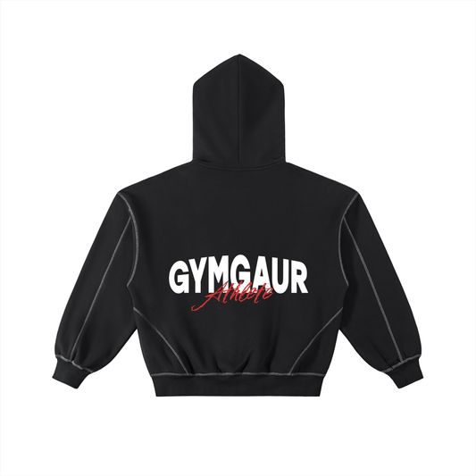 Contrast-Stitched Boxy Fleece Zip Hoodie